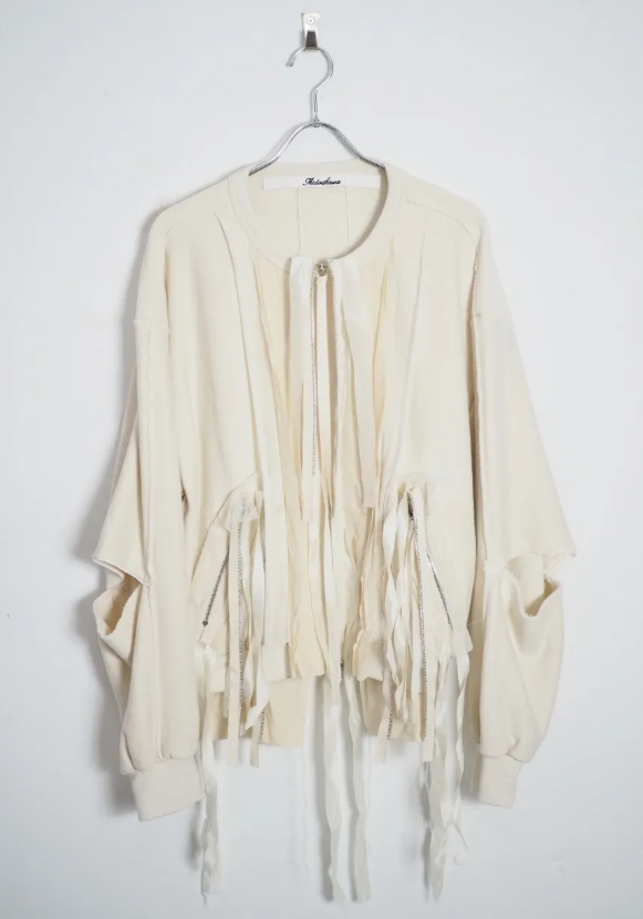 テープ・リボン使いが特徴的なフルジップスウェット。