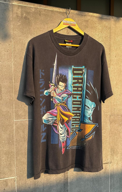 Tシャツ×デニムのカジュアルなスタイルですが、アニメキャラのVintageTシャツがとてもおしゃれなコーデです。