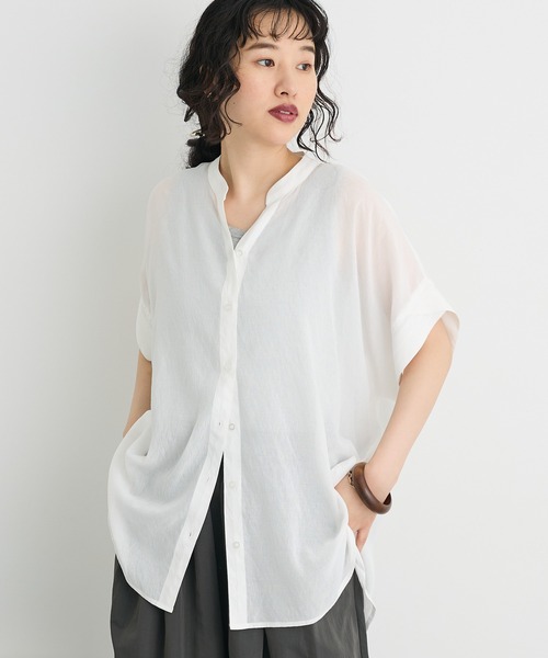 ・夏の体温調節やレイヤードスタイルの羽織物としても活躍します。すっきりとした印象のスキッパーネックに、袖のミルフィーユデザインが上品さを引き立てるお洒落なデザインです。