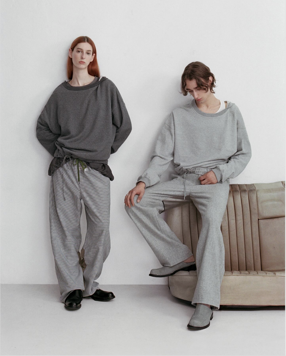 勝利が着用しているのは、ABELIA EDOWARD GOUCHAのパンツ! モノトーンのチェック柄が、勝利の柔らかな雰囲気にぴったりですね。